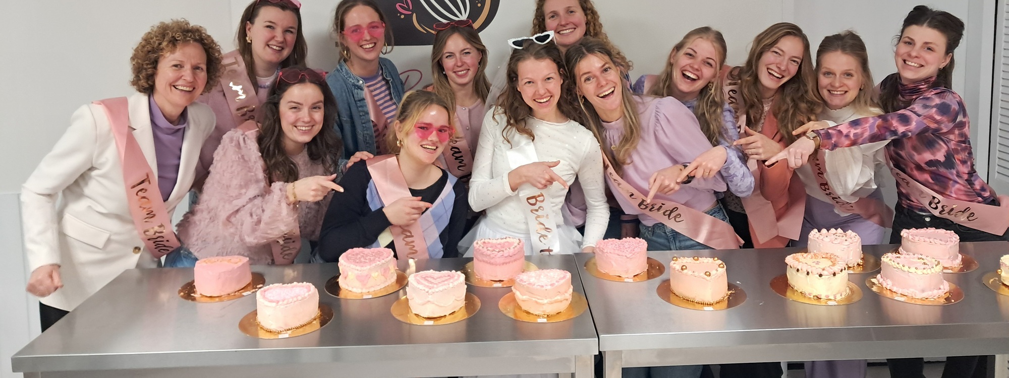 Kom gezellig je vrijgezellenfeestje vieren bij onze privé patisserie taartworkshop in onze bakstudio (min. 10 pers, max 16 pers).