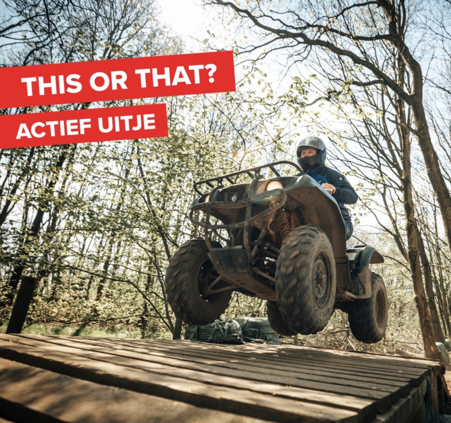 Na aankomst op onze locatie wordt je ontvangen door een instructeur die je in het kort vertelt wat er die dag gedaan zal worden. Je begint bij ons speciale parcours om quad te rijden. Na een korte instructie is het tijd om op de stoere quads te berijden en je vrienden te snel af te zijn! Na een gaaf ritje met de quad ga je vervolgens een grotere en ruigere auto instappen, namelijk een 4×4 terreinwagen. In tegenstelling tot het quad rijden is nu de uitdaging om met de auto zo beheerst en effectief mogelijk door de bossen te rijden.